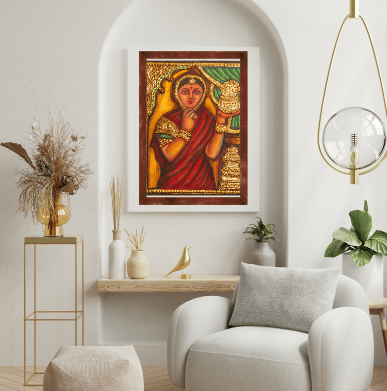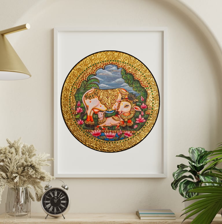 Discover the rich heritage of Tanjore painting through our family's legacy of state-level and national-level award-winning craftsmanship.