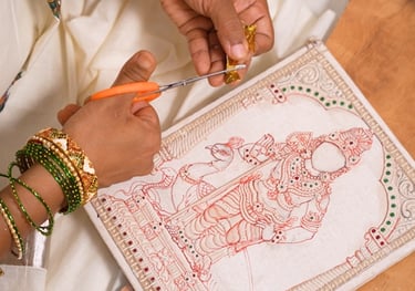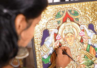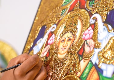 Lakshmi Vijayabhaskar is a distinguished artist whose mastery of classical Gold-Leaf Tanjore Painting stands as a testament to her profound artistic depth. Born into a lineage of eminent traditional artists, she carries forward a rich family legacy, preserving a tradition deeply rooted in heritage and devotion.