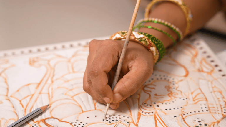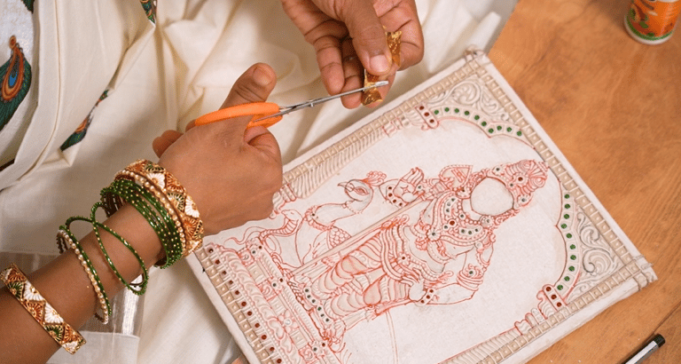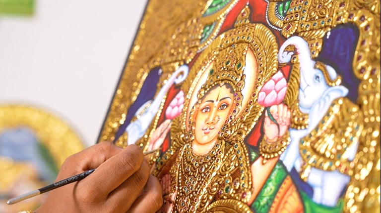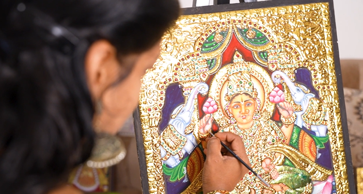 With her unwavering commitment, Lakshmi Vijayabhaskar continues to elevate the timeless beauty and cultural significance of Tanjore painting.